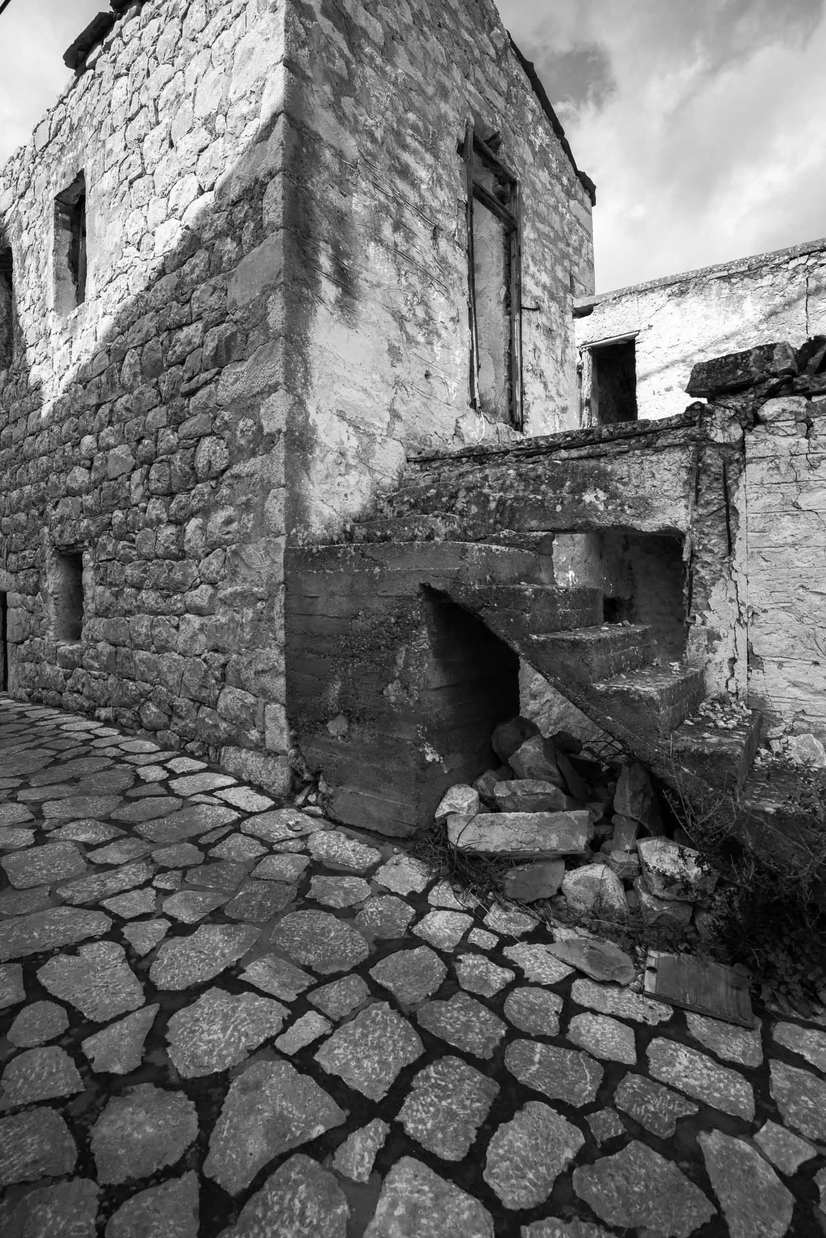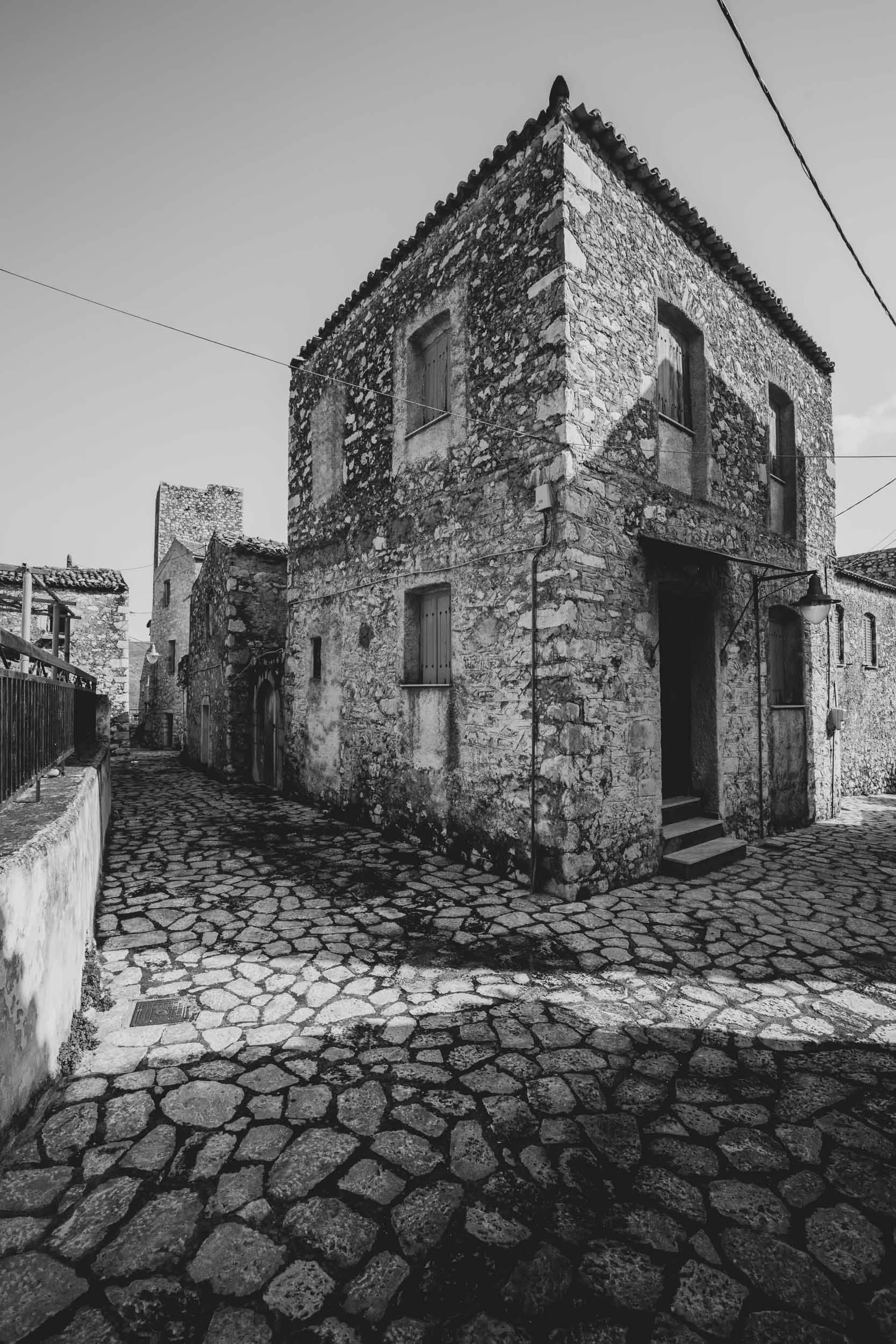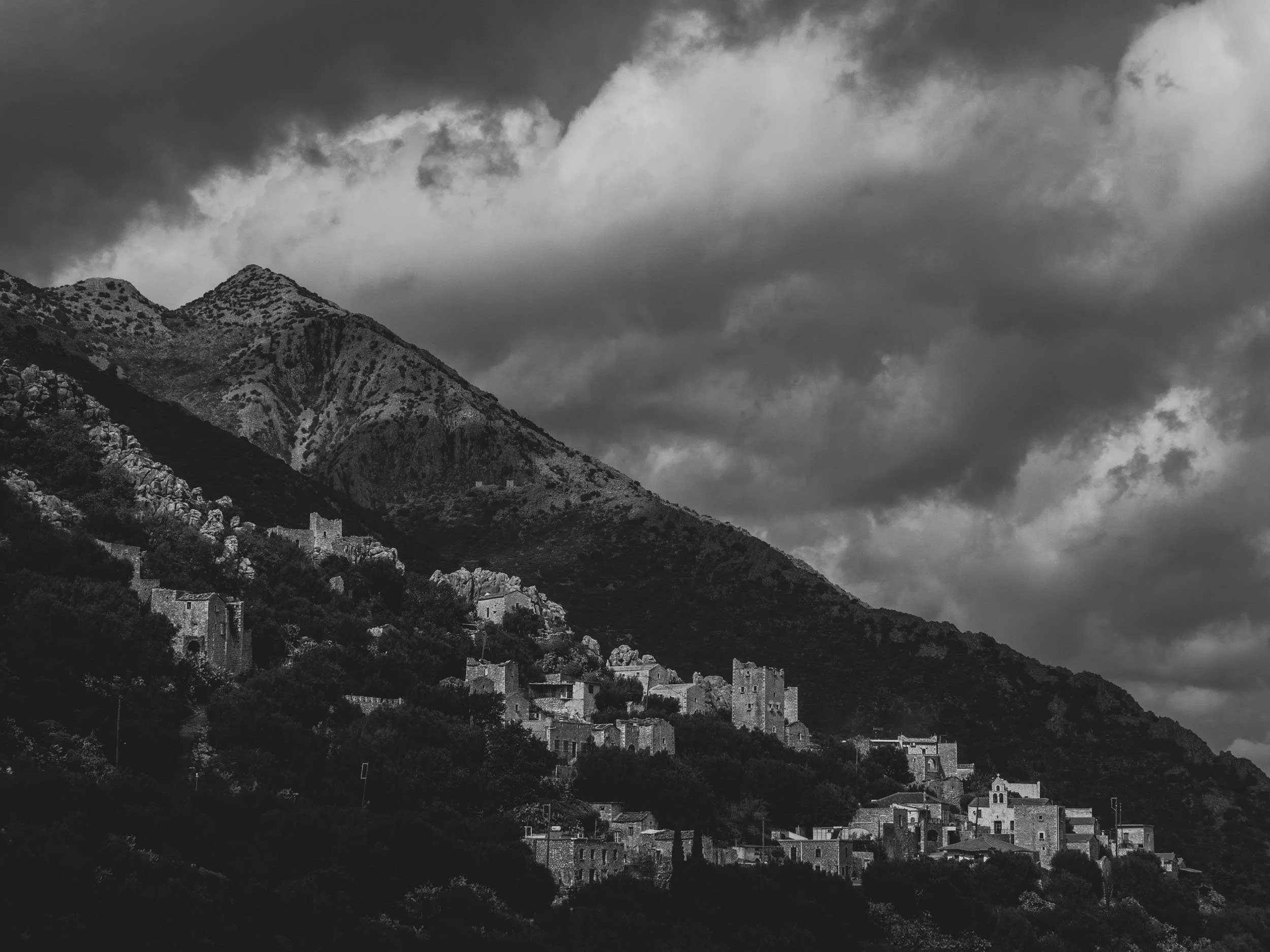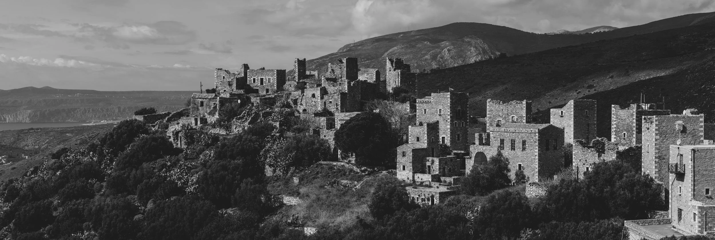 On February 13, 2022 I visited the region of Mani and cape Tainaro in Peloponesse, the southernmost edge of the Balkan peninsula. My plan was to photograph seascapes in color, however, while crossing the amazing land of Mani I was catched by the wild mountain scapes, the stone-builded -often abandoned- settlements and the dramatic winter light. I decided to edit and present this photo set in BnW.